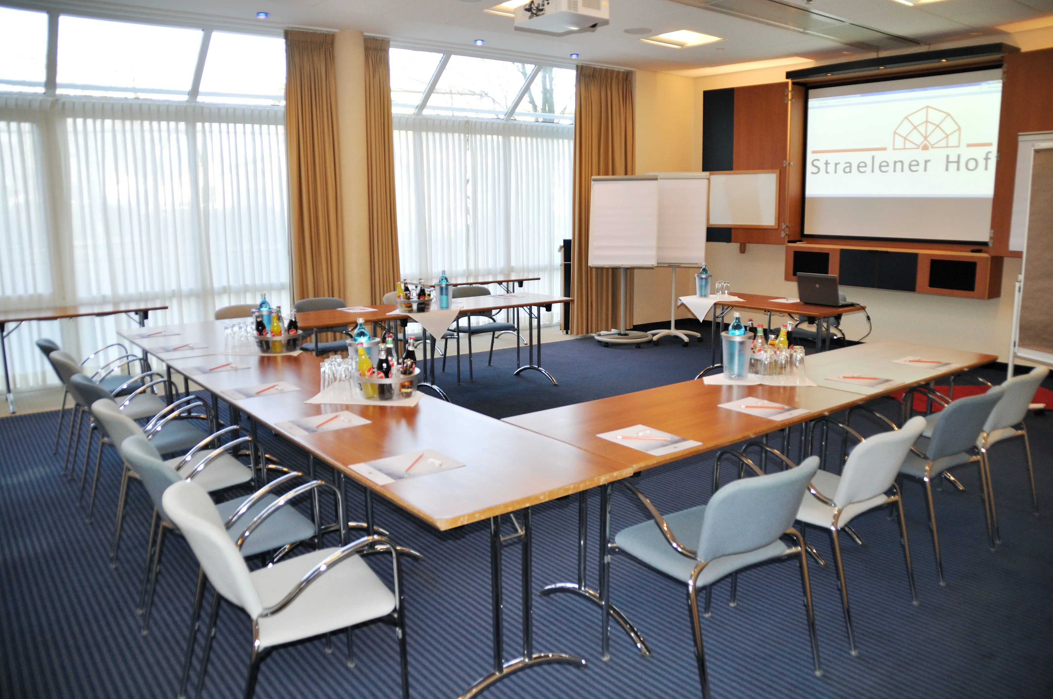Klimatisierte Tagungsräume mit modernster Ausstattung für stressfreies Arbeiten. Individuelle gastronomische Angebote vom kleinen Imbiss oder Fingerfood bis zum reichhaltigen Lunch-Buffet und eine schöne Umgebung für erholsame Pausen – das macht das Hotel Straelener Hof zu einem beliebten Ziel für Business-Gäste. Tagen Sie entspannt und effektiv in hochwertigem Ambiente.